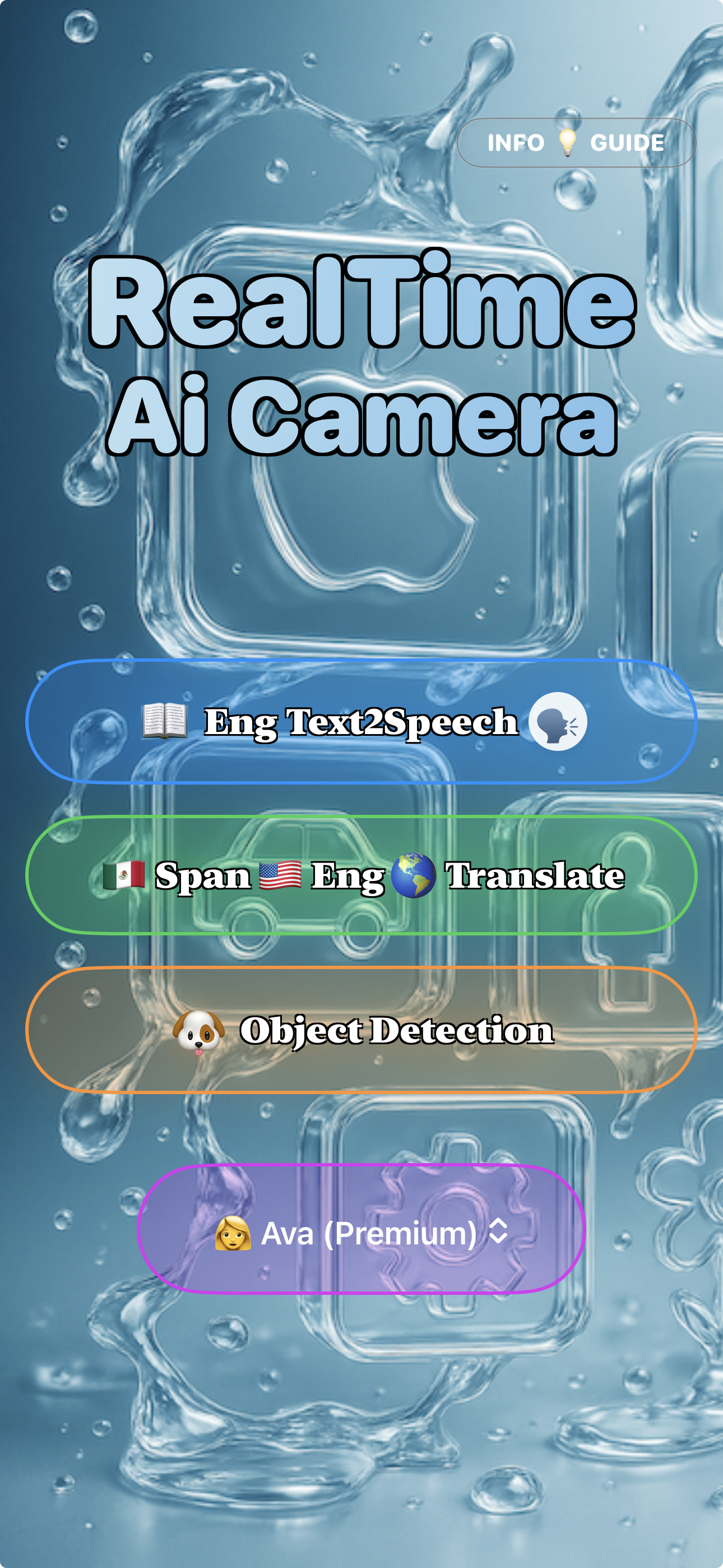 | 🌎 Translation | 🐶 Detection | 🏠 Home Screen | 📱 App Info | 📏 LiDAR Distance |